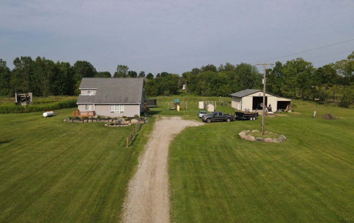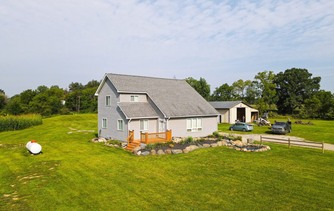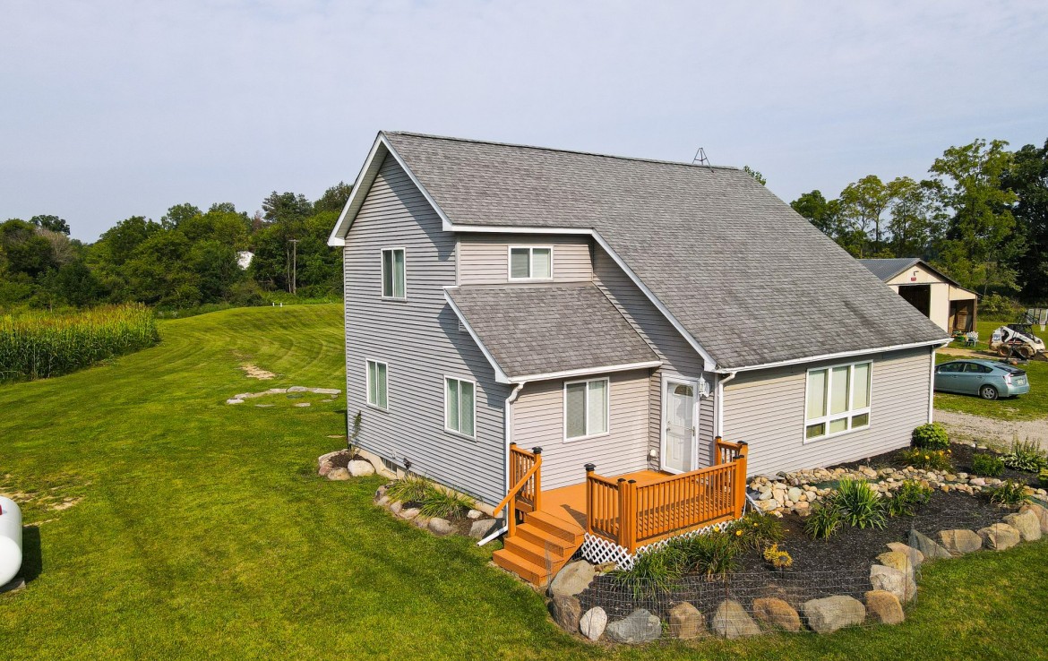 Almost 5 acres ready for the hobby farmer, hunter, and efficient homesteader who is ready for starlit nights in this small town rural setting. 4 bedrooms and 2 baths with 2106 sq. feet to treat the family to the country lifestyle they will love. Surrounded by farms and quiet dirt roads, it’s a peaceful setting off both front and back decks. Wood floors, cathedral ceilings, and a full basement are ready for your finishing. If you are looking for energy efficiency this is it, with a recent 30,000 dollar professionally installed solar panel setup. Your electric bills are economical throughout the year. The pole barn has brand new concrete and a large door for that RV or converts for livestock. A food plot with tall grassy border draws the wildlife in and the hunting is excellent for the after-work stroll to the blind in November.