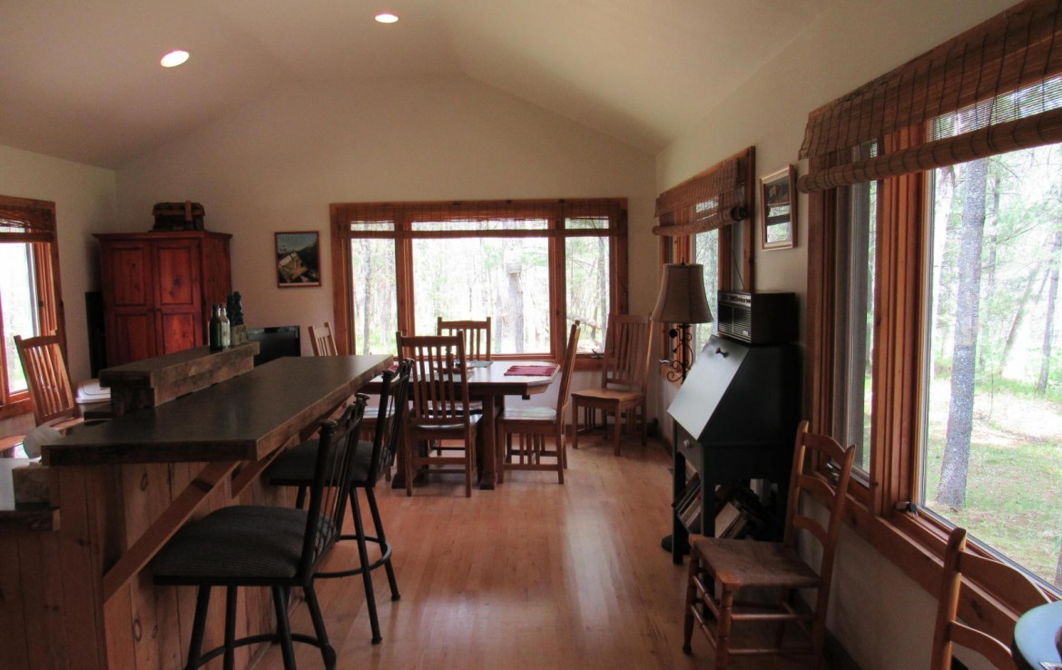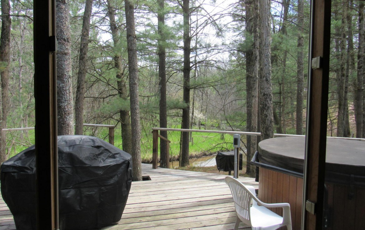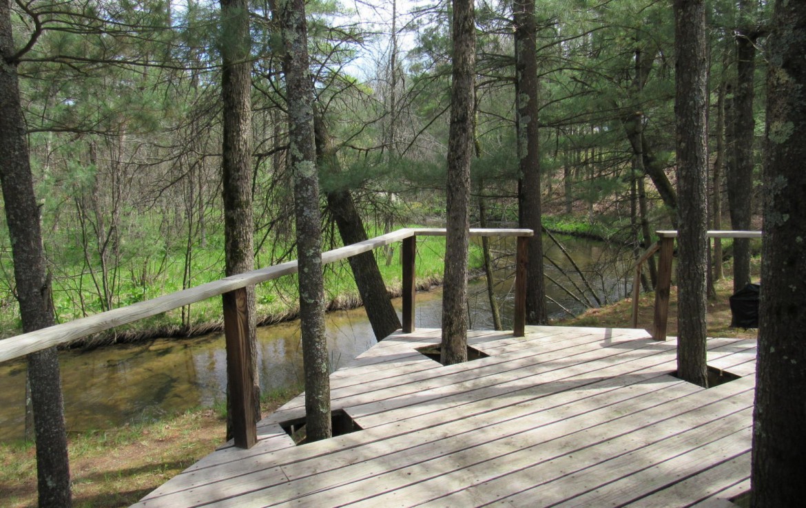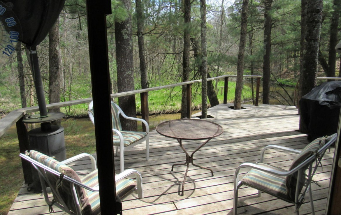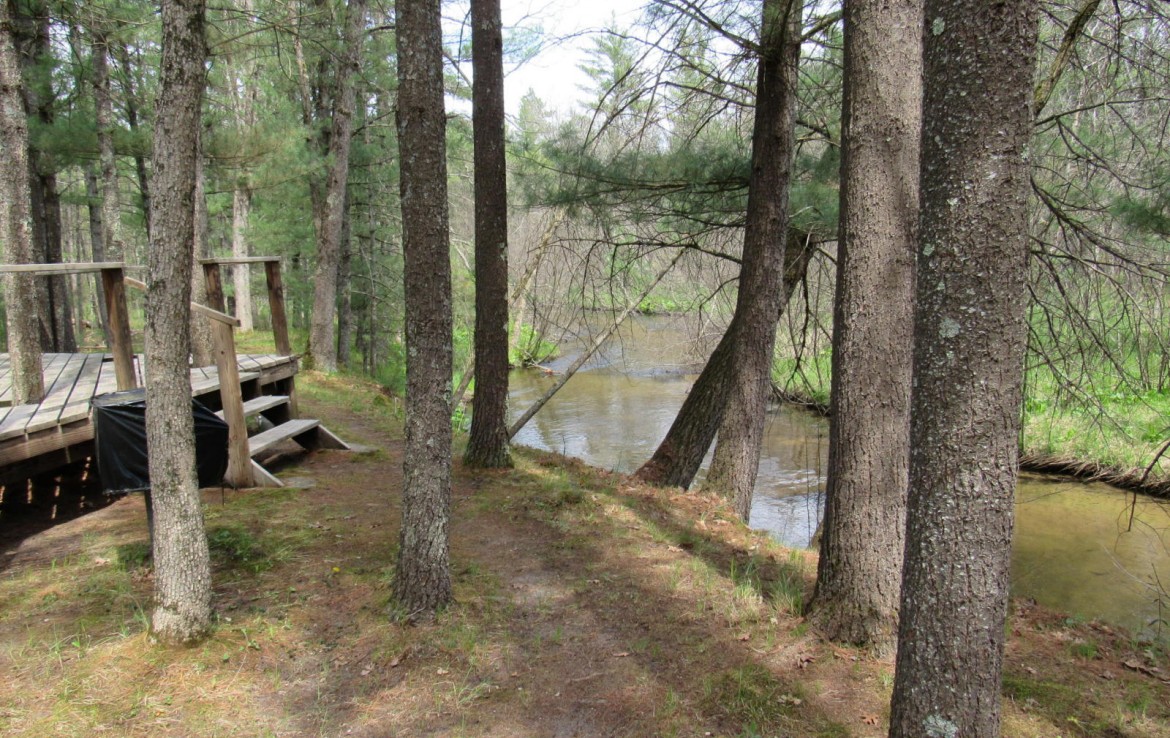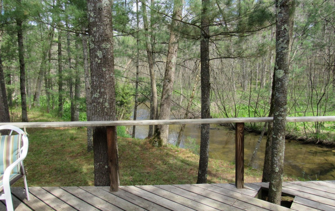 Charming cabin situated on a peninsula created by Middle Branch Pere Marquette River with approximately 547 ‘ of frontage.  The cabin sits close to the water’s edge so you can enjoy views of the river from almost any window or the hot tub on the deck. Center island in the kitchen makes it a great gathering area and there is a large loft area for those extra overnight guest that will show up. Enjoy the great outdoors from the large riverside deck and fish or hunt literally out your own back door.