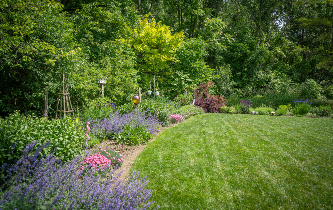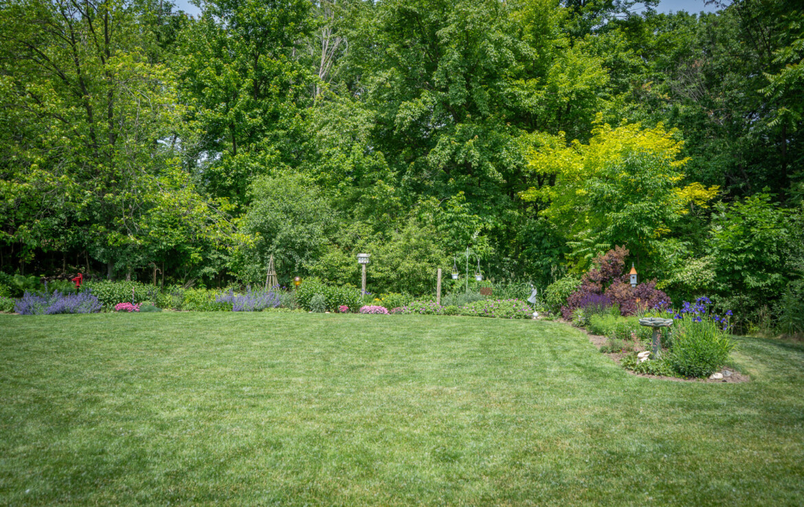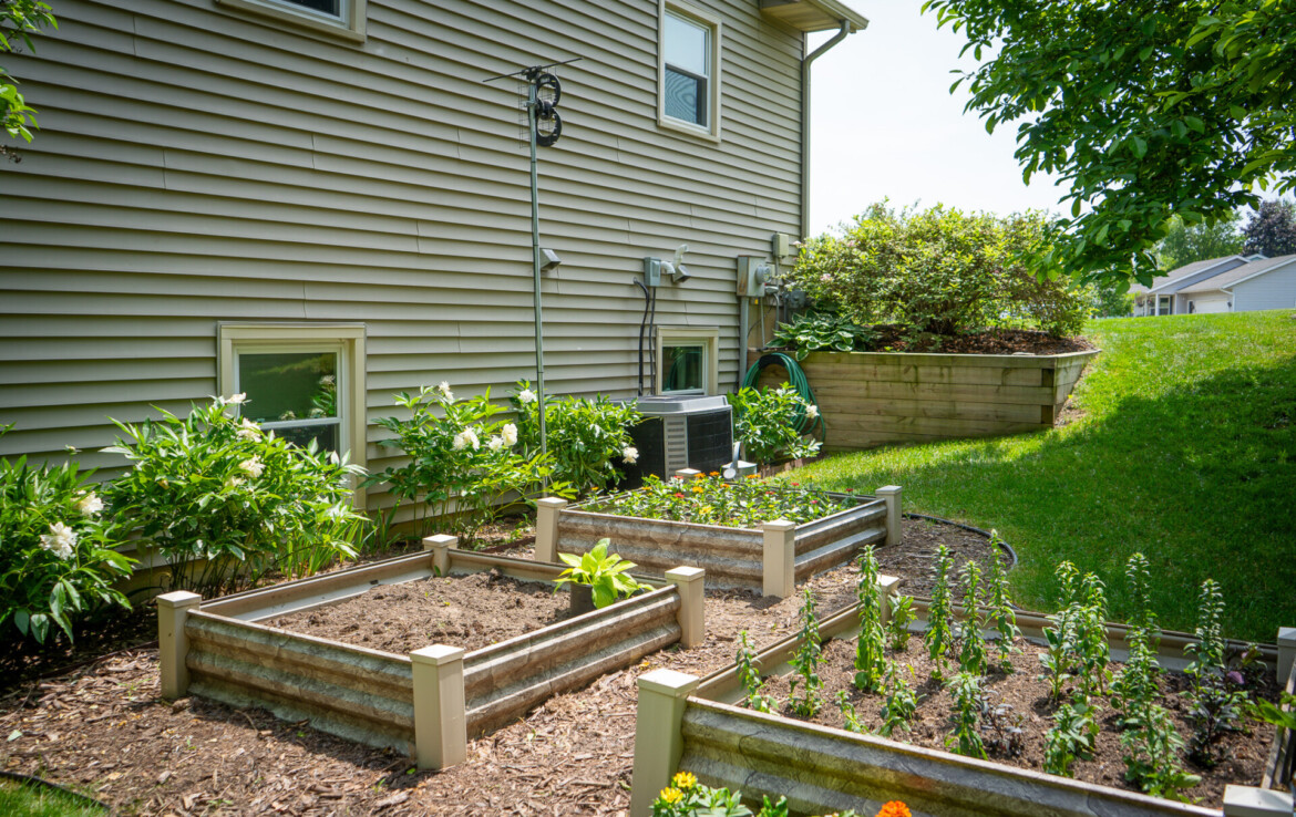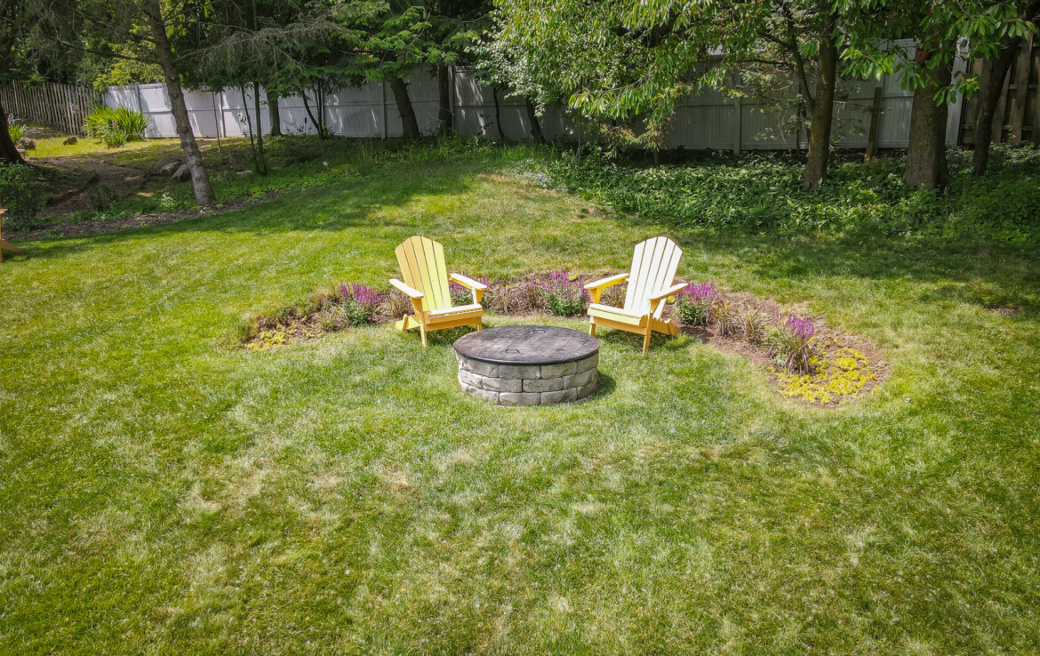 The partially finished basement features a cozy living room, an additional bedroom, and a full bathroom, with convenient walkout access to the lush backyard. Outdoors, the well-manicured yard is adorned with stunning flower gardens, raised garden beds, and a fire pit, making it a true retreat.