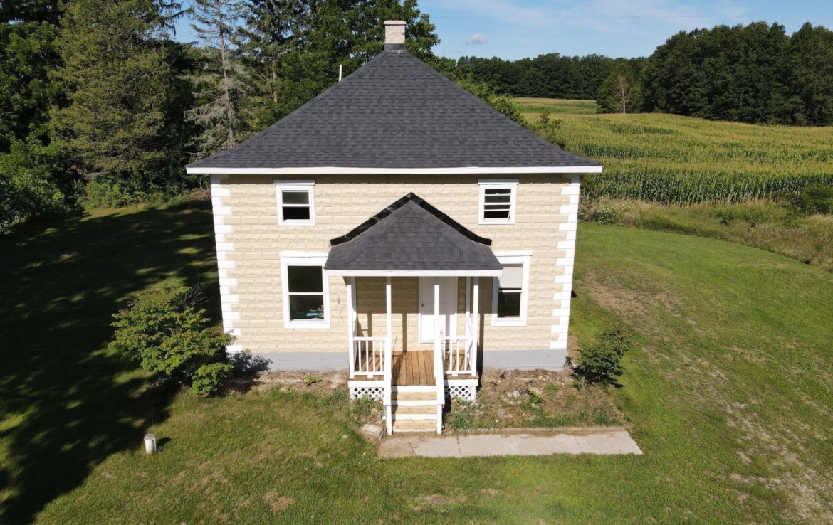 Solid and sturdy classic country home on a quiet farm lined road. This is a stunning 37 acres of rolling farmland and woods in Oceana County’s Newfield Township. Really cool location just south of Mclaren lake. This block home features new windows, roof, paint, toilets, flooring, and is ready for your finishing touch to be that perfect hobby farm setting. The land sways up and down around a pond and wetland area that extends like a peninsula into the property from the North. There is an abundance of wildlife in all directions and on this parcel. The basement is usable and has a nice mudroom back entry for access. The simple and classic design makes this a wonderful second home or even full-time homestead.