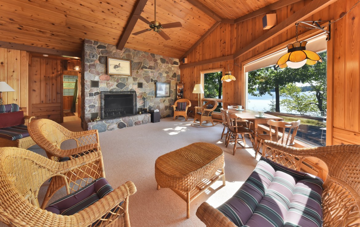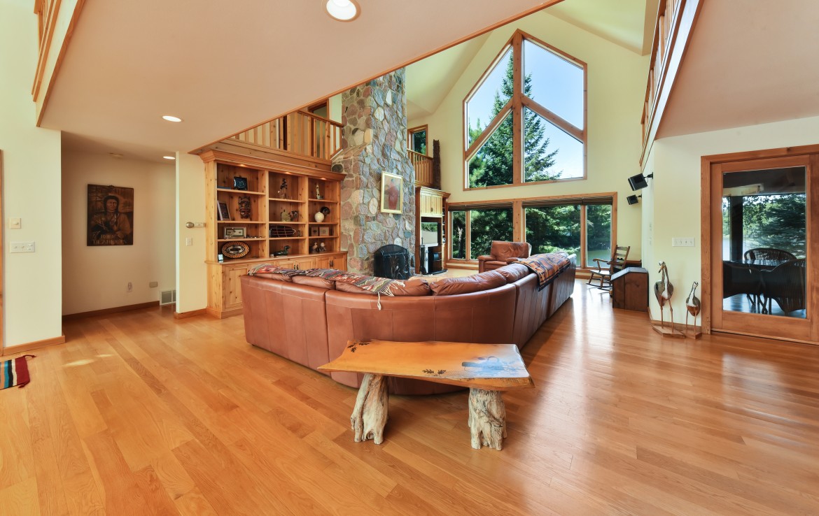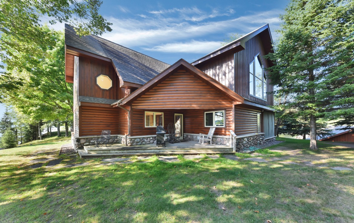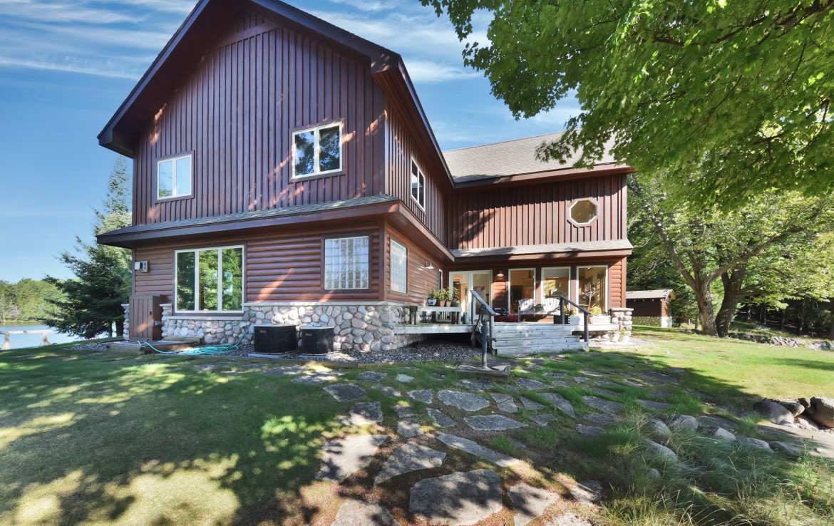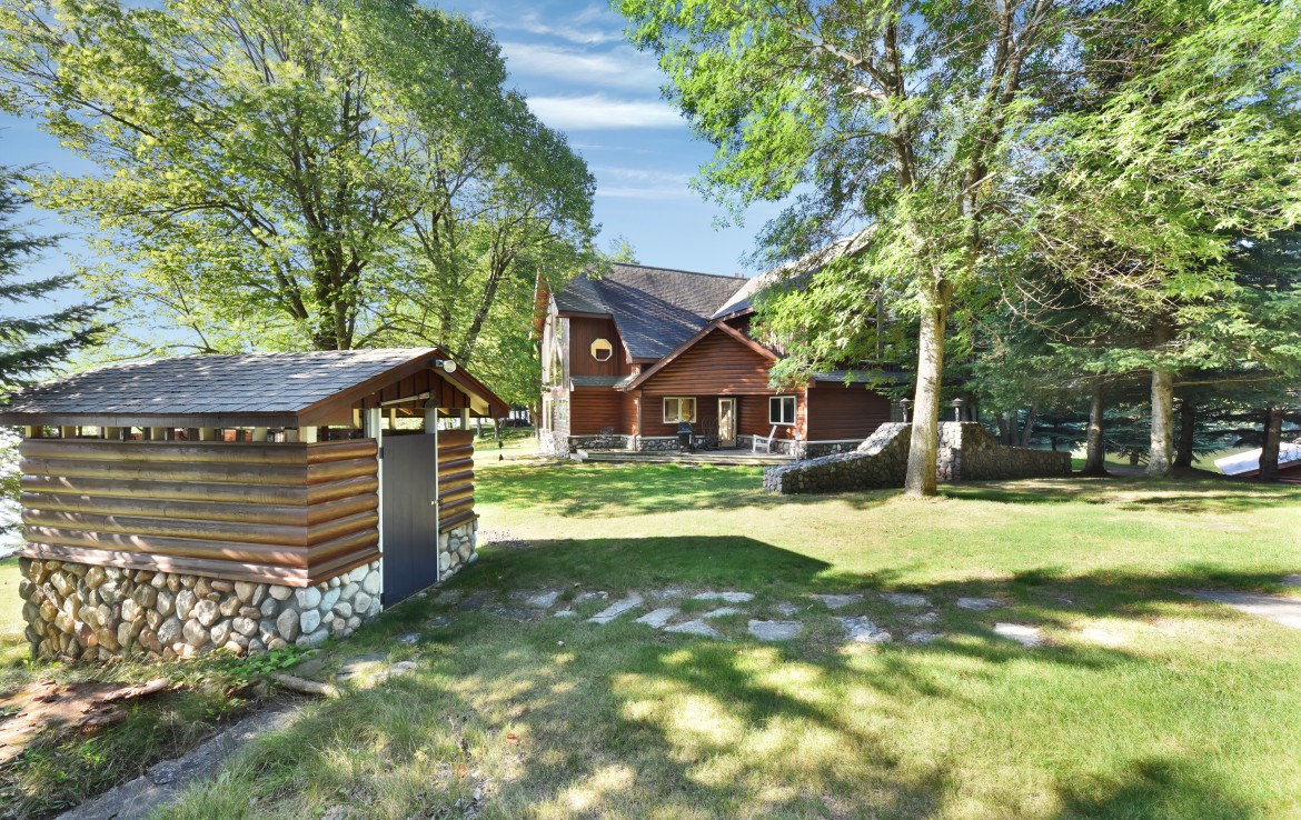 The World Famous Cisco Chain of Lakes consists of 15 lakes with over 271 miles of shoreline. As one of the largest privately held properties in the Chain with more than 22 acres and over a mile of lake frontage this is a rare opportunity. The property is being offered at under appraised value and offers a stunning main lodge nestled on the narrows of the privately owned peninsula, a lakeside guest house, grandfathered wet boathouse, 3 car garage, workshop, gazebo and plenty of opportunity to explore the property’s private trails and shoreline. Friends and family, corporate retreat or full-time residence are just a few of the options for this property. The Main Lodge/Home has 3 bedrooms, 3 baths, an expansive great room with open floor plan, dining, kitchen and massive stone fireplace. The master suite is main floor with private bath and walk-in closet. Family rooms on both the upper and lower levels and a screened porch allow for many activities and environments to meet family and guest desires. Quiet spaces for reading and lake viewing, rowdy zones for kids and guests which can all run simultaneously. The guest house also offers unlimited lake view opportunities and is located on a small rise overlooking the lake and peninsula. Enjoy 3 bedrooms, 2 bathrooms, sauna, great room, lower level family room and 3 handcrafted split stone fireplaces giving warmth to the interior environment. The wrap around deck draws you to the sound of the waves hitting the shore. A grandfathered wet boat house and fish cleaning room add to the lake experience with hassle-free in and out for the pontoon, ski boat or fishing rig. The fully insulated and heated garage with workshop, secondary laundry area and shower make professional maintenance and caretaking a breeze. Outdoor activities in this area are unlimited and span all seasons. In addition to the lake activities, summer and winter, fall colors and endless sporting opportunities make this a heritage property for any user.