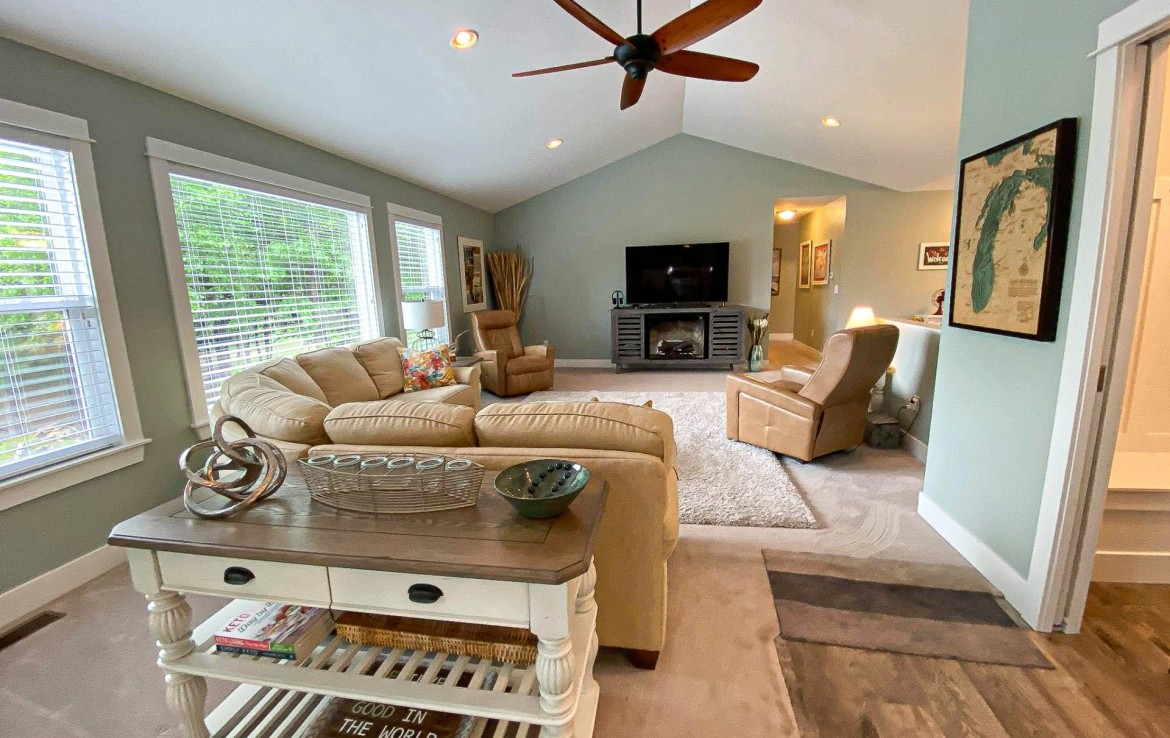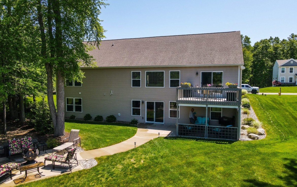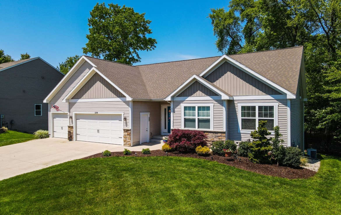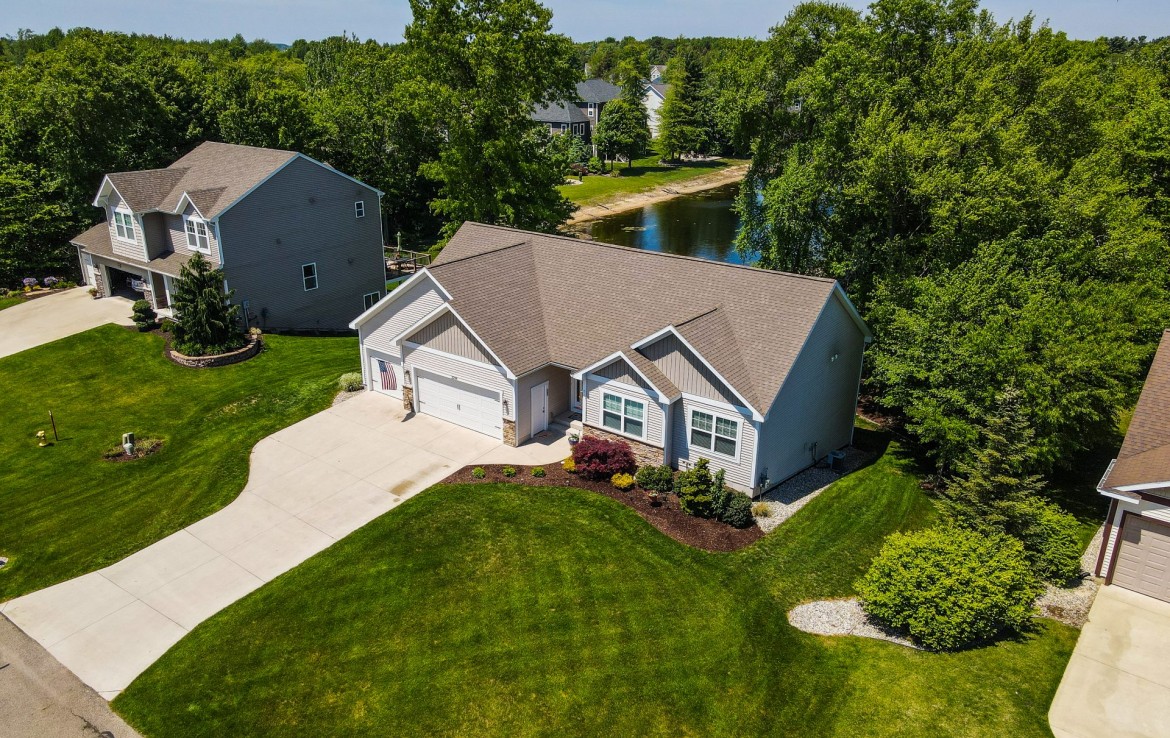 Warm and inviting walkout Ranch with majestic pond views in popular Chandy Acres of Fruitport. This custom built home by Wakefield builders features 3 bedrooms 2 baths and is loaded with value. Large master suite with a water view, walk in closet, and master bath with oversize bathtub.The kitchen boasts quartz counter tops, quality cabinets, centre island, walk-in pantry, stainless appliances, and LTV flooring. Other features include open floor plan, main floor laundry, partially finished basement ready to complete and a 3 car garage. On the outside you will find a elevated deck with a covered patio below, concrete patio with fire pit all surrounded with spectacular landscaping and a small wooded area. Seller is a licensed Realtor in Michigan