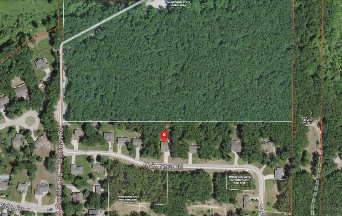 Never before on the market, this custom built ranch will impress immediately. Start off with backyard access to Muskegon State Game Area! This creates an everlasting wooded scene and plenty of open space to explore for your lifetime, no homes in sight. Inside find hickory floors and cabinets. Distinct colors and design features make this home stand out with quality and efficiency. Main floor laundry of course and 3 bedrooms with 2 full baths on the main floor. Ranch style homes are the best with an open dining, kitchen and living area. A well-appointed bar and tv room downstairs along with 1/2 bath is perfect for the next super bowl party. Make sure to see the video as we cannot show at this time. We will still negotiate offers contingent on viewings when the restrictions are lifted.