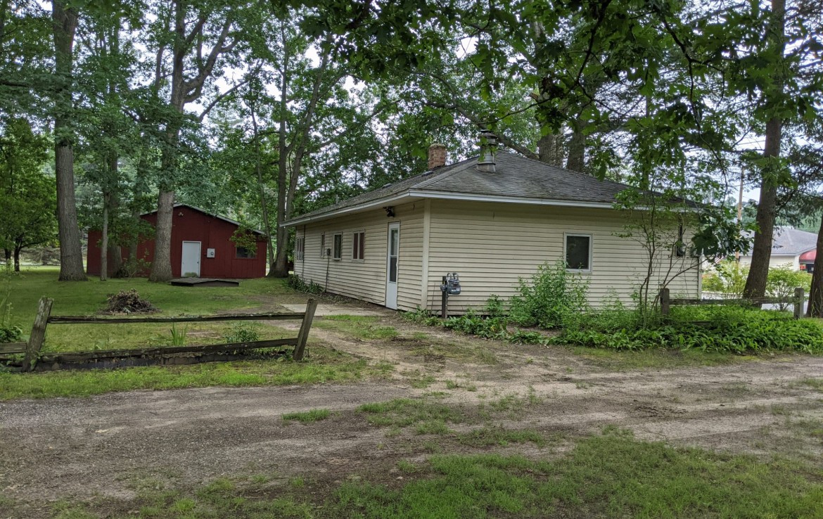 This property would make an ideal location for a gas station. It is a busy corner with high traffic count that includes very many lake-going boat owners in need of recreational gas.  One look at the iconic barn on this property’s 2.77 acres will give you ample ideas as well. It is prime for a suite or man cave conversion. Must have an appointment to go onsite and pre-approval of funds available for a commercial loan or cash. Home is 1200 sq ft, pole barn  1536 sq ft, Gambrel style barn is 768 sq ft. All information from tax documents.
