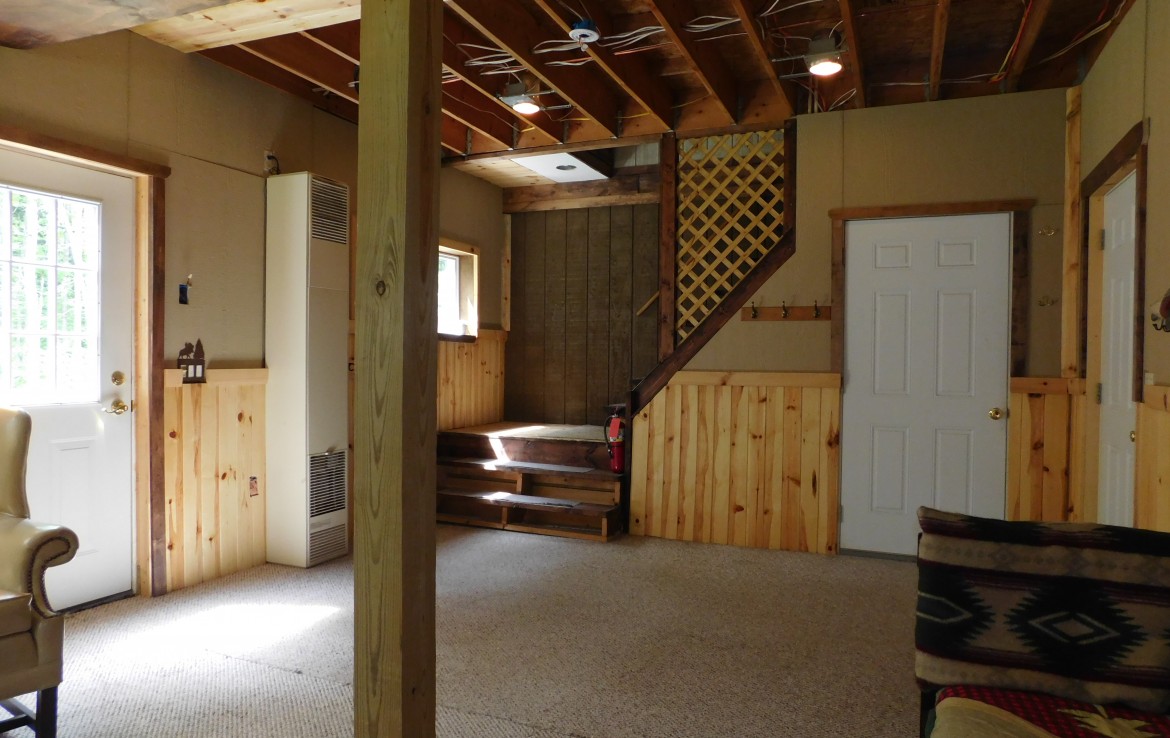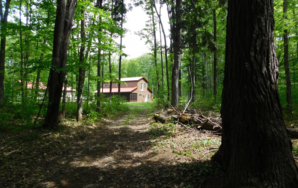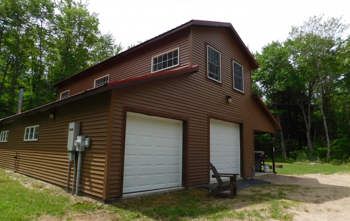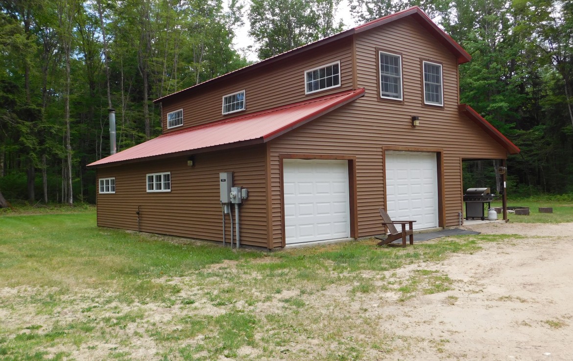 Your perfect get-a-way or year round home. Recreational opportunities in area: Snowmobile, ORV, Hunt, Fish or just relax. 50 acres of mature wooded forest with a variety of wildlife and a nice trail system through property. A 30 x 40 pole barn with a frame construction garage, drive through doors and electric provides ample room to store all your toys. 8′ insulated doors and 10′ walls! The living quarter is heated either with a LP wall furnace or a woodstove. There is an additional 650 sq’ awaiting to be finished. A covered porch allows you to watch as wildlife enters and exists the property. An LP gas Generac generator is on site for emergency service if ever needed. Both the home and garage have maintenance free siding and metal roofs. There are a couple hunting blinds and even a shooting range! Note: The upper level is finished but the lower level is in progress. It will not be finished since the home is for sale
