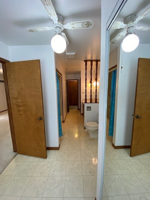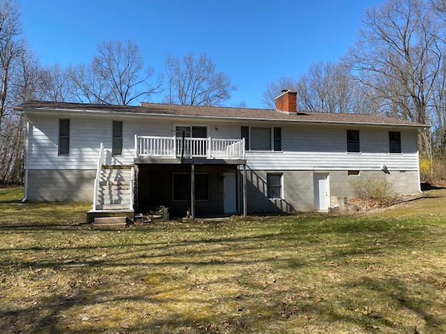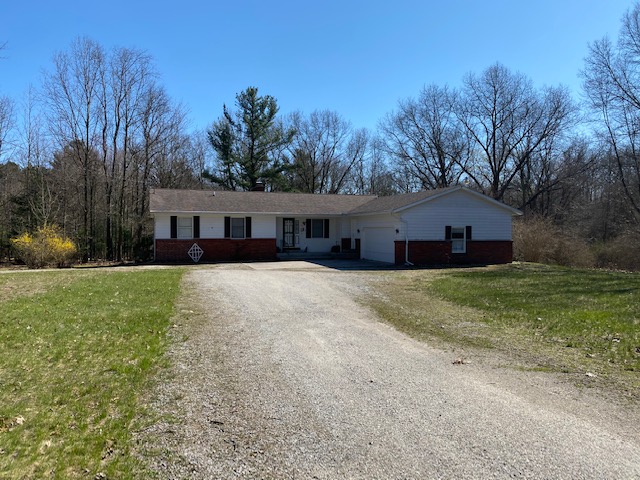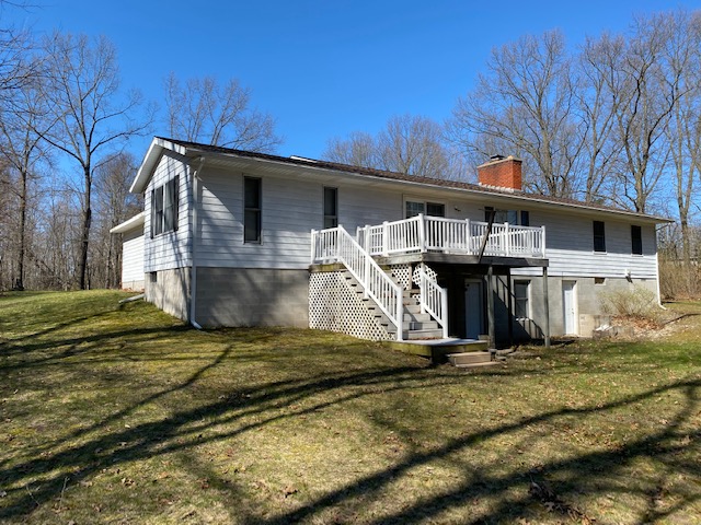 Bright, Airy & Move in Ready! Two Bedroom, 2.5 bathroom ranch home on 7.5 wooded acres has fantastic appeal with room to spread out and plenty of closets and storage space throughout home and garage…perfect for that growing family. Main floor has a spacious master suite, large 2nd bedroom, laundry area with 1/2 bath, family room and living room highlighted by brick fireplace with portable electric insert, built-in shelving and recessed lighting. Lower level walkout has carpeted finished areas, storage, full bath and raised hearth with wood stove. Lower level could have additional bedroom built-out. Home is heated with closed loop geothermal system. 23×24 attached garage and composite deck to backyard area gives the finishing touches to this comfortable home.  7.5 acres bordered by Buttermilk Creek provides the outdoor part of your experience! Home is within walking distance to schools and just inside city limits. Possession 5 days after closing – 2 ring security flood lights not included in sale.