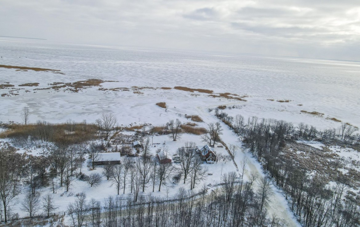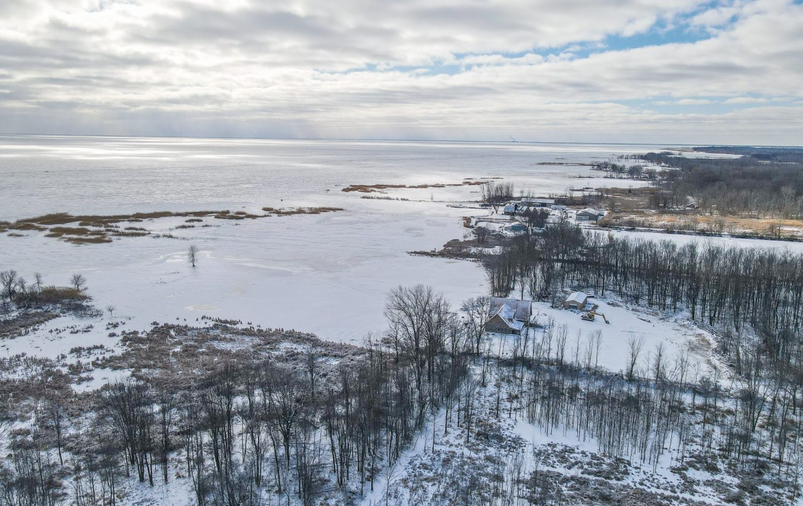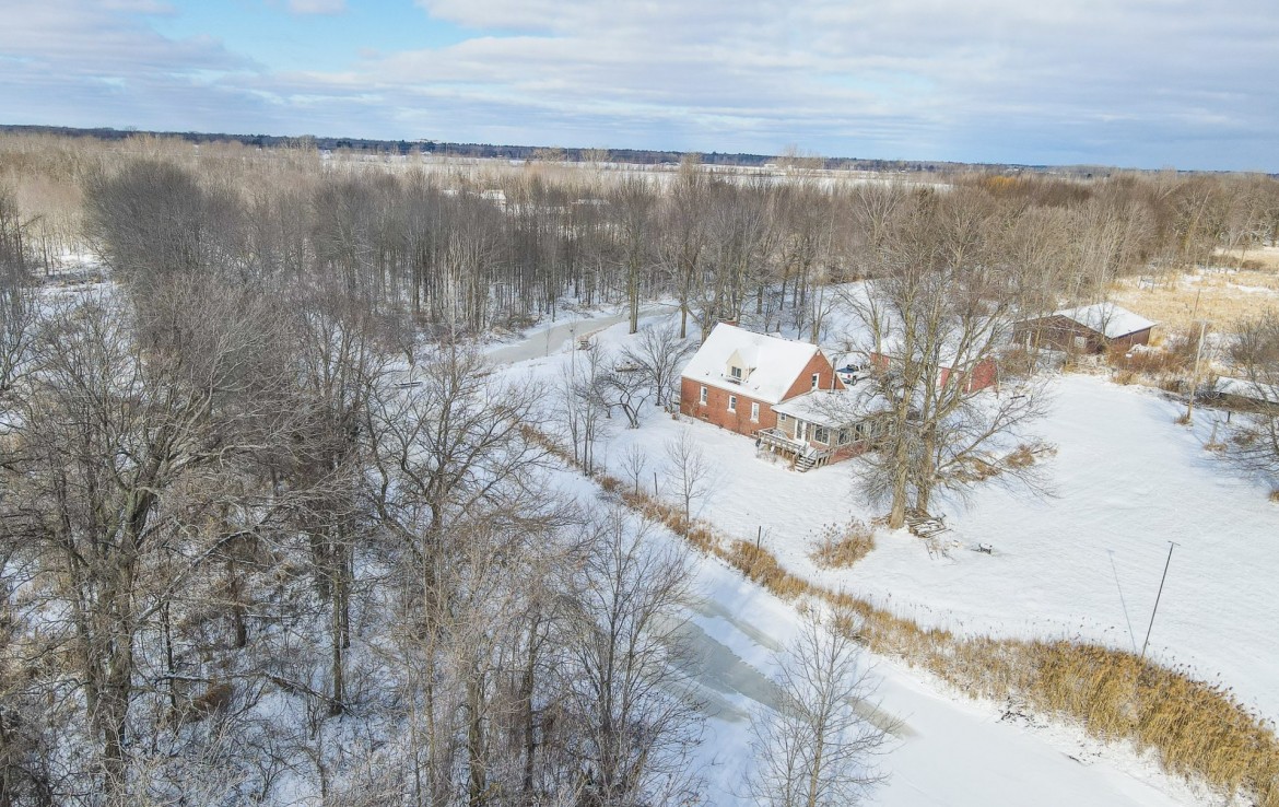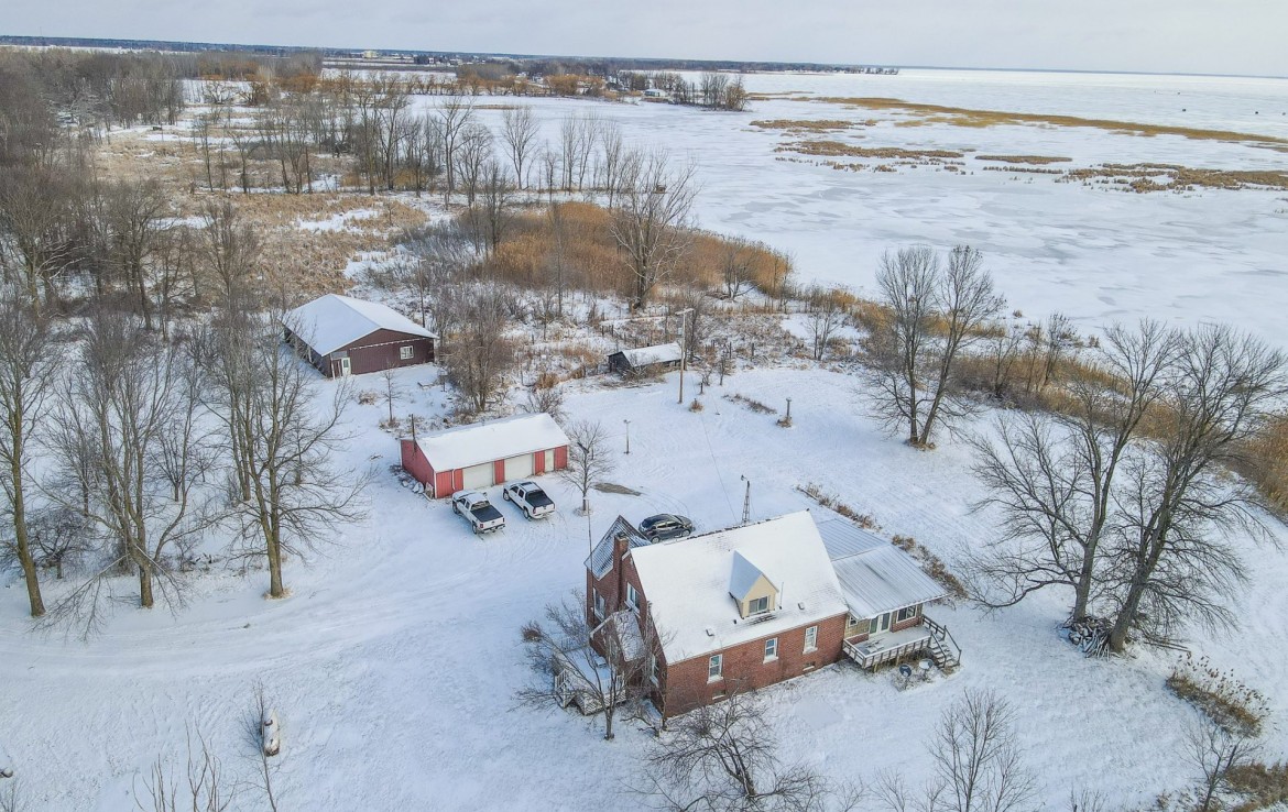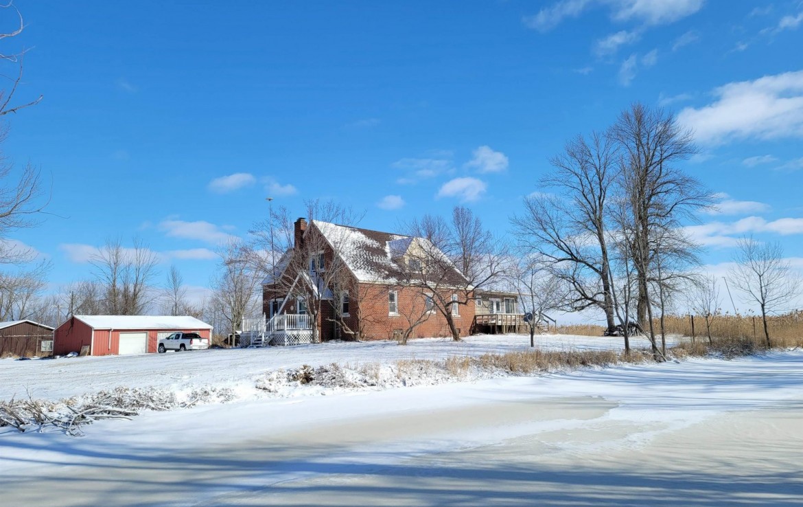 Sunrise Acres, Extremely Private 20+ acres on Lake Huron in Saginaw Bay. This is a sporting property dream come true. Heavily wooded 20 plus acres with 2000 feet of waterfront on White Feather Creek and Lake Huron in Saginaw Bay. Very solid older 4 Bedroom brick home with stunning sunrise views, large garage 23 X 40 and barn 40 X 56. White Feather Creek is navigable with docking next to the private mid-size boat launch. Direct access for one of the hottest fishing locations in the Bay by boat or Ice Shanty. Hunting is excellent with great deer and mature buck populations taking refuge in the thickets, islands and orchard on the property in the predominantly agricultural zone of the county. This property cannot be seen from waterfront dead-end road so please arrange for a tour.