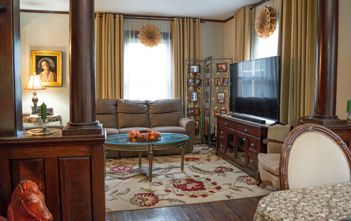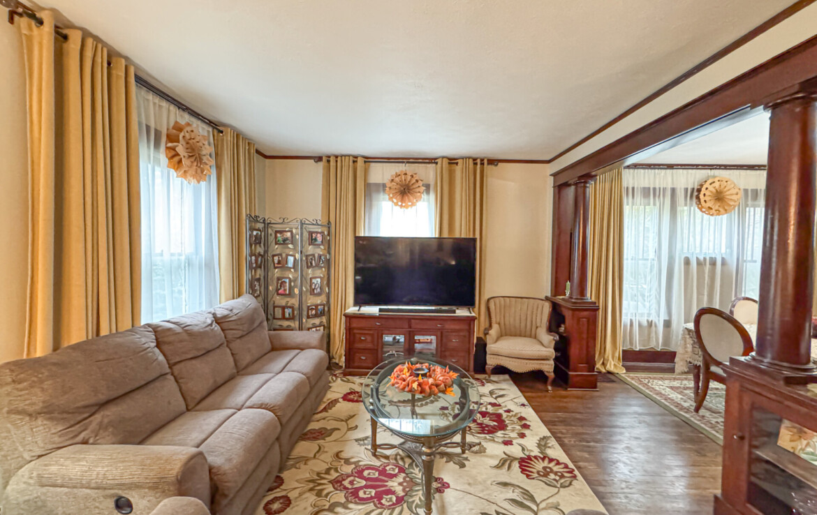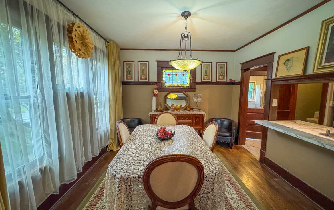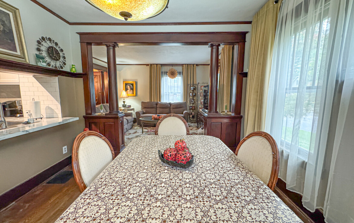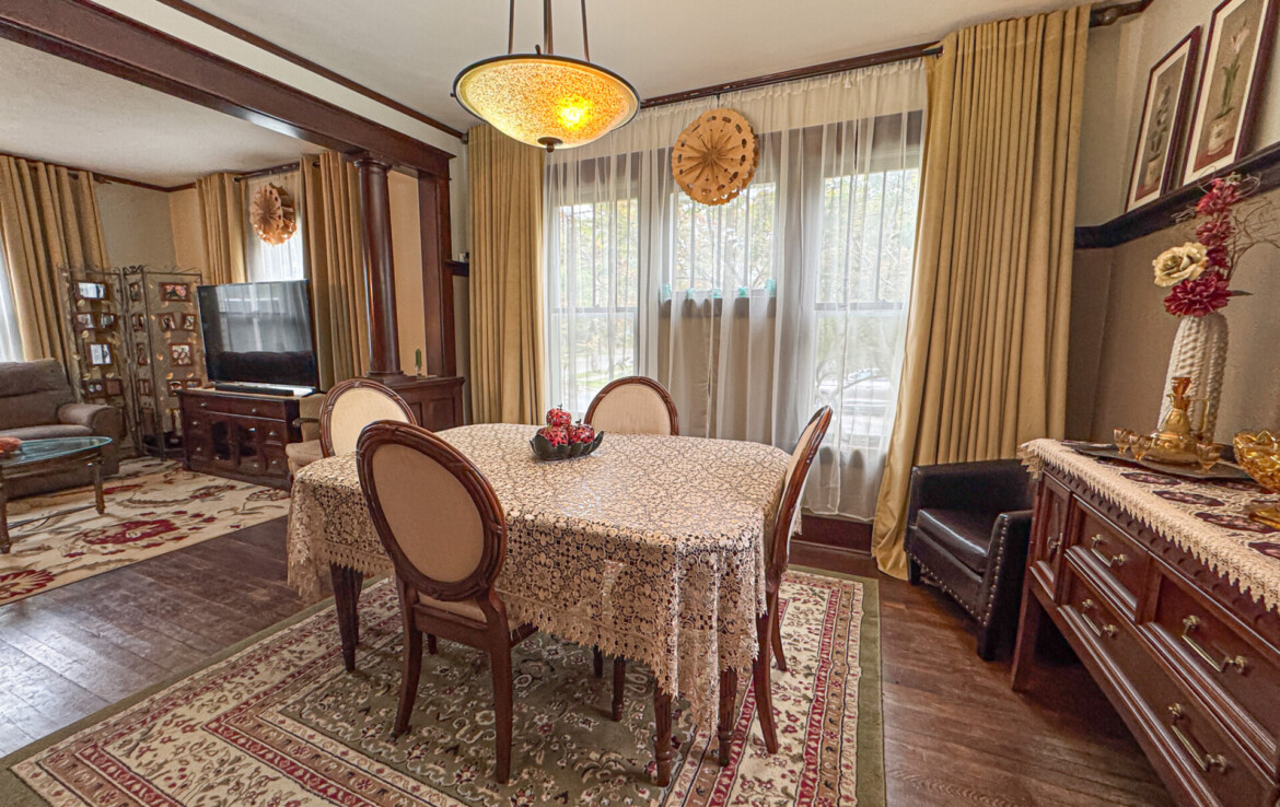 Step inside and you’ll be greeted by stunning natural hardwood floors, original wood trim, and bold wood pillars that showcase the craftsmanship of a bygone era. The soaring ceilings create a grand sense of space, while natural light floods every corner. The expansive living room flows seamlessly into a spacious dining area, ideal for entertaining guests or gathering with family.