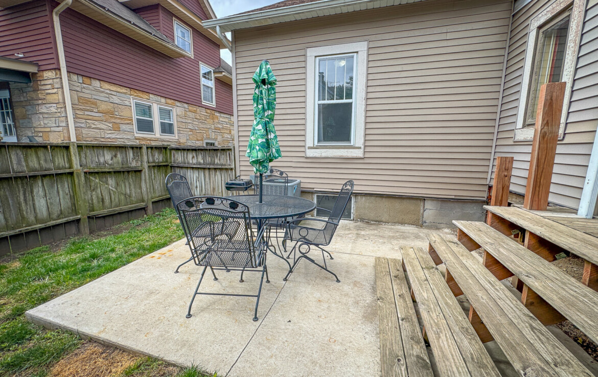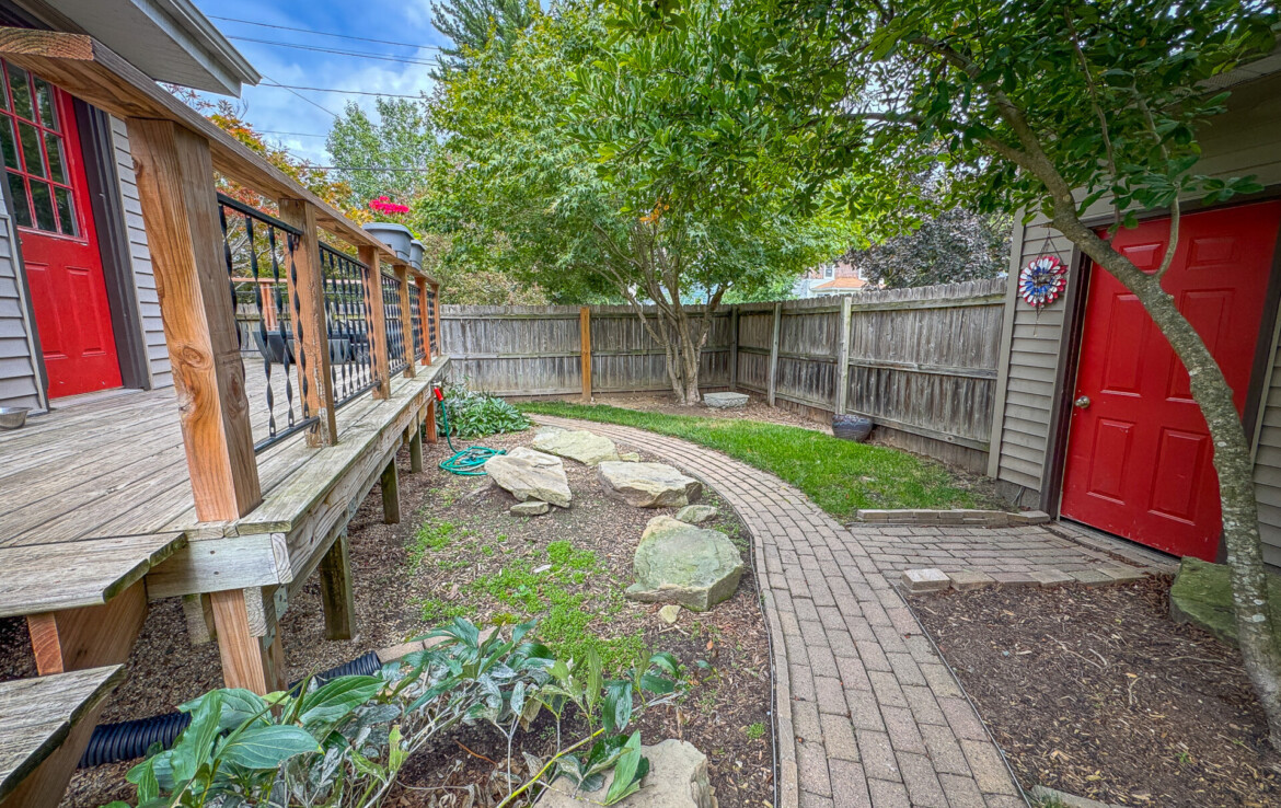 Step out back to enjoy a large wraparound porch leading to a beautifully designed backyard with stone pavers and a full fence—perfect for pets, play, or outdoor entertaining.