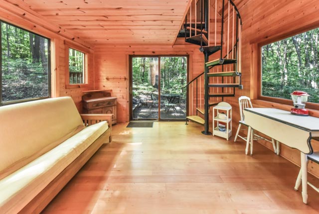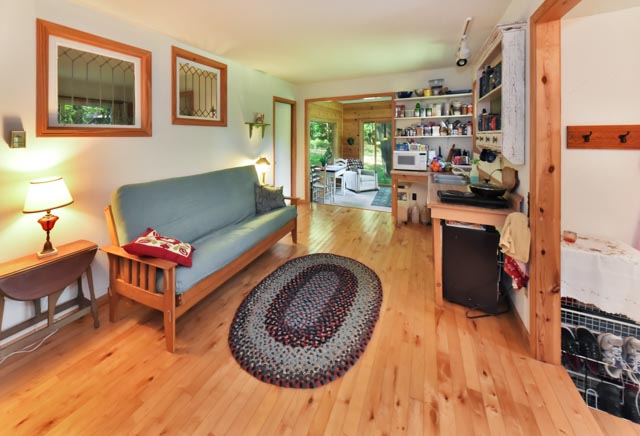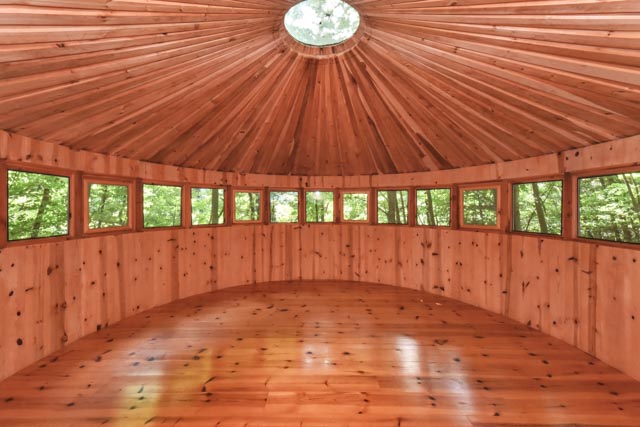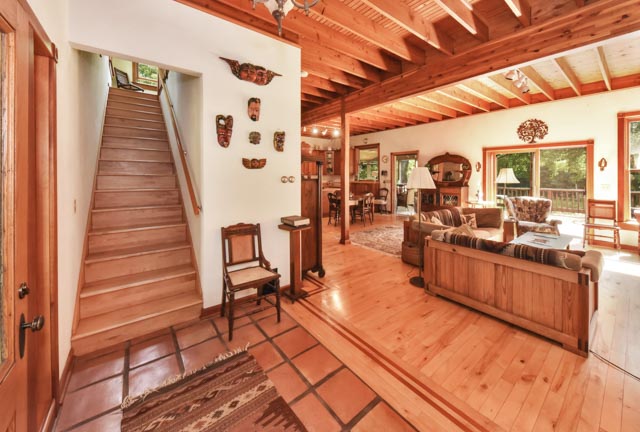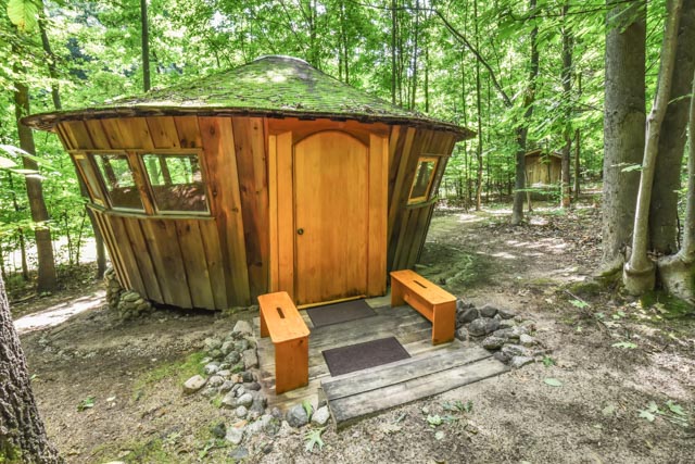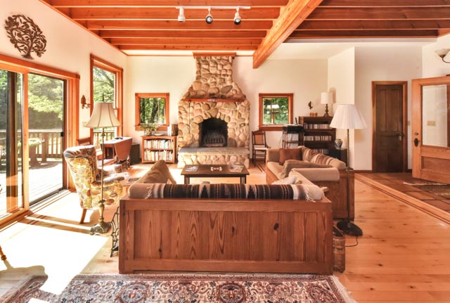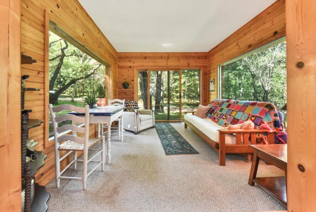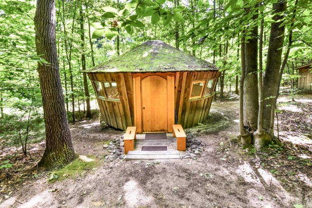 The setting of this Oceana County 60 Acre homestead will bring a smile to your face everytime you hit the gravel road. The home is more than expected and finished in a way that fits very well with the valley view. A large 3 season room helps the view as well. The main home with 2 bedrooms 2.5 baths has a full walk out with wood-fired sauna and bathroom. Beautiful hardwood maple floors throughout and Saltillo tile in the foyer and kitchen really make this an easy full-time place to relax. Custom cherry cabinets with the center point of the dining room as the Heartland wood cook stove, which can heat the whole home on cool nights. If that isn’t good enough you also have a fieldstone fireplace with stones from the land and a cherry mantel cut from the land. The guest house is as comfy as they get with open living areas, over sized windows in awesome sitting room, 1 bedroom, full bath and 2 car attached garage. 60 acres of some amazing elevation changes and diverse managed forest. There is a forest stewardship plan on this piece currently and it looks great because of it. The trails are established and carve out a path through mature timber and unique undergrowth. One section of 22 acres has wild leaks every year. These trails lead you to two different rustic cabins, each strategically placed in with awesome hilltop views. They both come with all the basics giving comfort to your guests throughout their stay. There is also a remodeled camper permanently placed with deck and roof. A must see to understand all you are getting here. You will see in the pictures a yurt, the design is by Bill S. Coperthwaite who is considered the best at this type of construction and teaches others how to construct his designs.  This structure could be anything, a studio, a bedroom or a place to go when the world is too noisy. It is located just a short distance from the main home. Located in the beautiful shoreline County of Oceana you will be conveniently placed between Muskegon and Ludington….only about 30 miles either way…work and shop there….but come home to that serene and peaceful place in the woods! Take a look at the video and the fantastic photos!