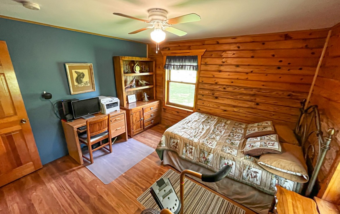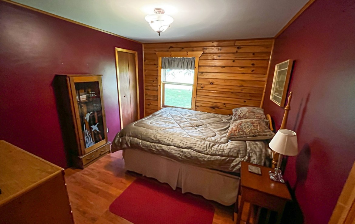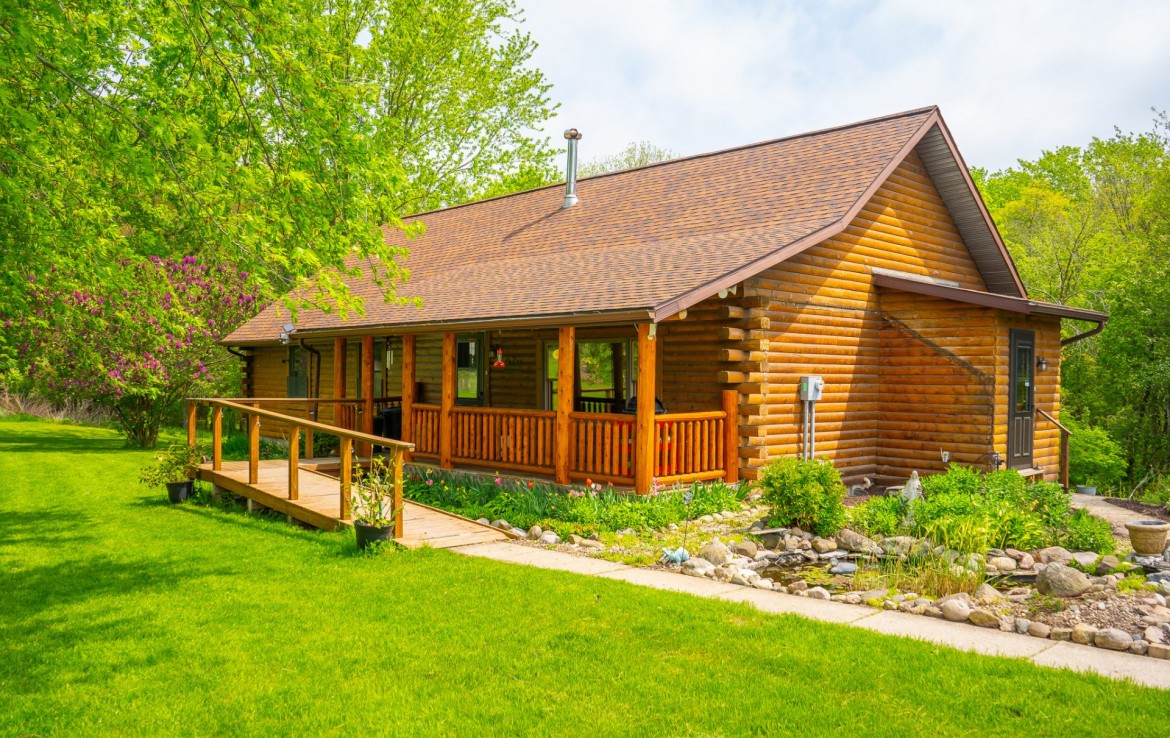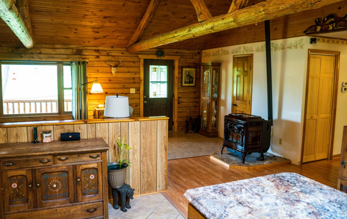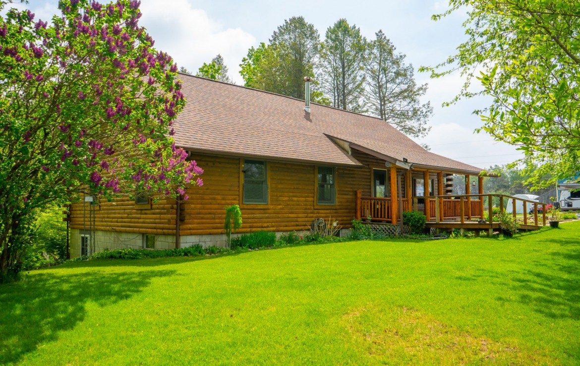 Located off a quiet country gravel road just north of Scottville Michigan sits this absolute gem of a property and home sites. The cabin rests overlooking a tranquil pond with picturesque views from every single window. Your front porch overlooks a beautiful grassy 18 acre meadow with autumn olives scattered on one side for the ultimate deer cover. The windows on the rear of the house including the walk out basement slider give you a view of a pond teaming with wildlife. This tongue and groove real log cabin has approximately 1400 square feet main level with 3 bedrooms and 1 full bath. The lower level walkout has 1 finished bedroom and 1 finished bathroom. This home is on a Geothermal forced air system, has a coy fish pond with waterfall and an awesome pellet stove that really sets the stage for the main living areas. There is a 30 x 40 pole barn with half finished floor and the other side set up for horses. Utilize the electric fence, lean-to and water for your equestrian or farm animal hobbies. This land is one of the nicest 40’s we have been on. It has big deer all over it and wildlife everywhere you turn. Rolling hills, mature timber, thick secluded bedding, open meadows that could be agricultural and best of all water. Not much more you can ask for. As a bonus you get a separately addressed single wide trailer that is very usable. Great for your mother in-law or the extra guests for thanksgiving or deer season.