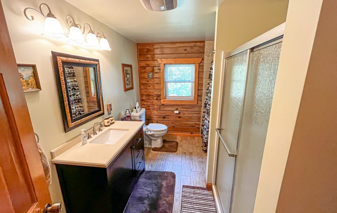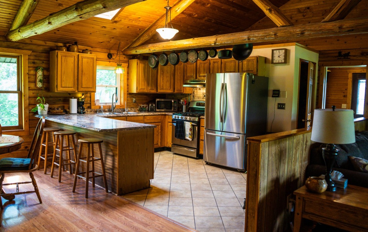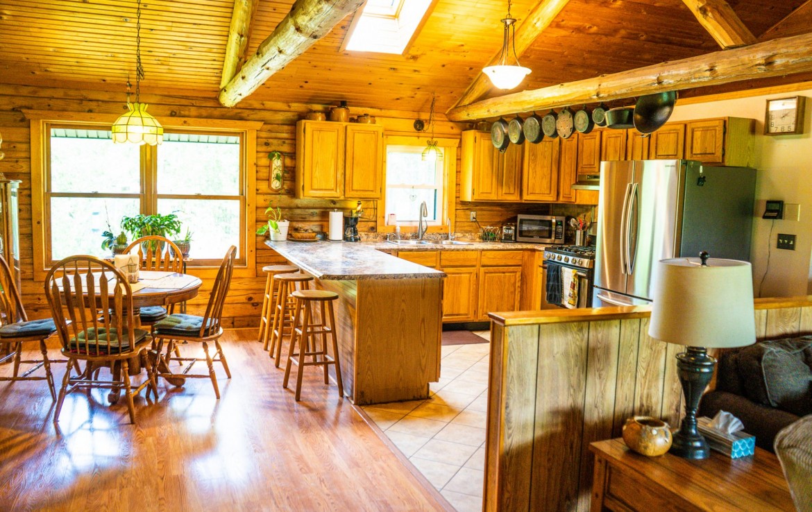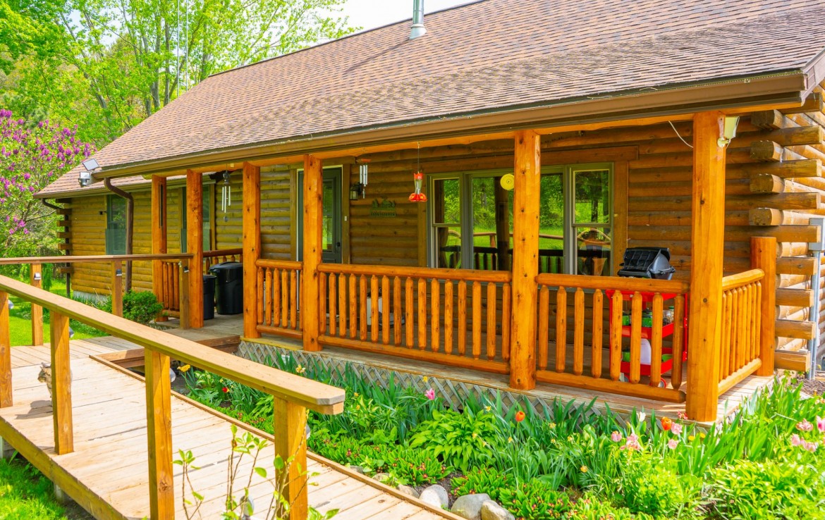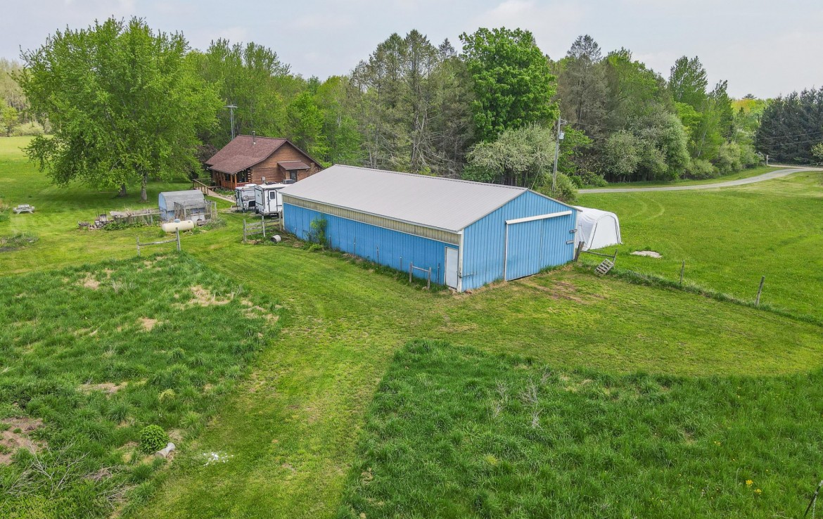 Located off a quiet country gravel road just north of Scottville Michigan sits this absolute gem of a property and home sites. The cabin rests overlooking a tranquil pond with picturesque views from every single window. Your front porch overlooks a beautiful grassy 18 acre meadow with autumn olives scattered on one side for the ultimate deer cover. The windows on the rear of the house including the walk out basement slider give you a view of a pond teaming with wildlife. This tongue and groove real log cabin has approximately 1400 square feet main level with 3 bedrooms and 1 full bath. The lower level walkout has 1 finished bedroom and 1 finished bathroom. This home is on a Geothermal forced air system, has a coy fish pond with waterfall and an awesome pellet stove that really sets the stage for the main living areas. There is a 30 x 40 pole barn with half finished floor and the other side set up for horses. Utilize the electric fence, lean-to and water for your equestrian or farm animal hobbies. This land is one of the nicest 40’s we have been on. It has big deer all over it and wildlife everywhere you turn. Rolling hills, mature timber, thick secluded bedding, open meadows that could be agricultural and best of all water. Not much more you can ask for. As a bonus you get a separately addressed single wide trailer that is very usable. Great for your mother in-law or the extra guests for thanksgiving or deer season.
