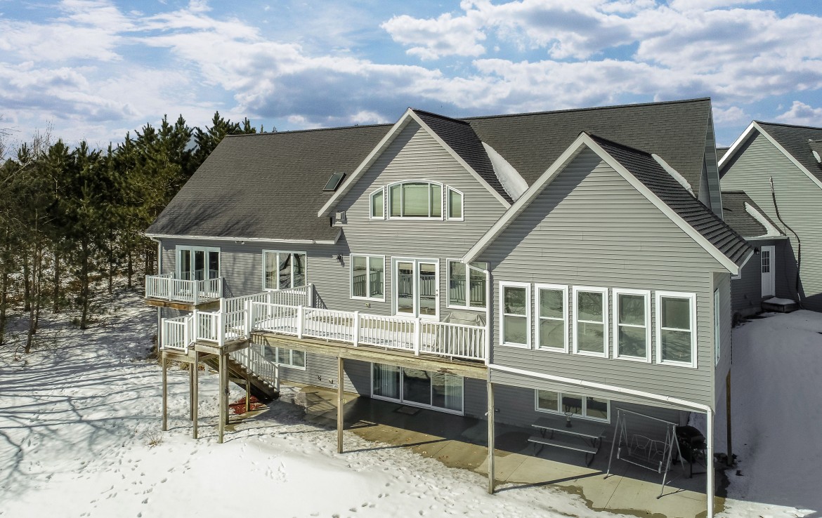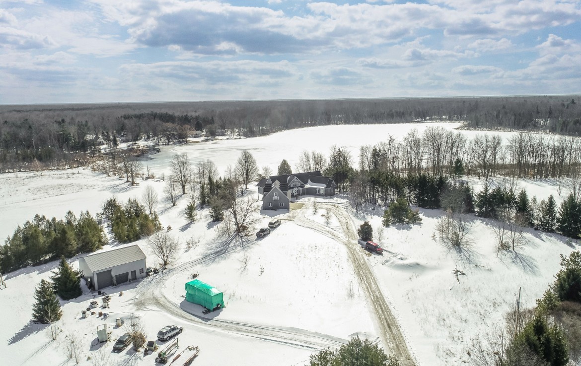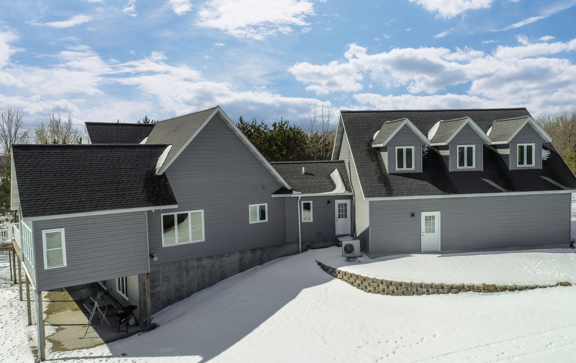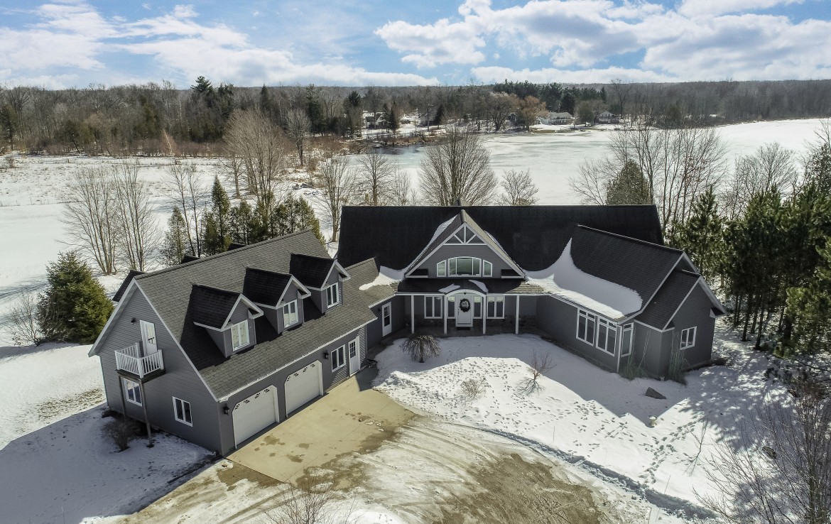Its not easy to find a beautiful contemporary style home with just over 175′ of lakefront access! This private location sits on a 50 acre lake that boasts great fishing for bluegill, pike, perch, and crappie. Sitting between two larger tracts of wooded area, the wildlife that passes through the property is abundant. A large deck, and walk out patio make the perfect set up for entertaining guests during the summer months. Lower level has potential for apartment or small rental. Also on the property stands a 30×40 pole building that is wired for 220V and and has water.