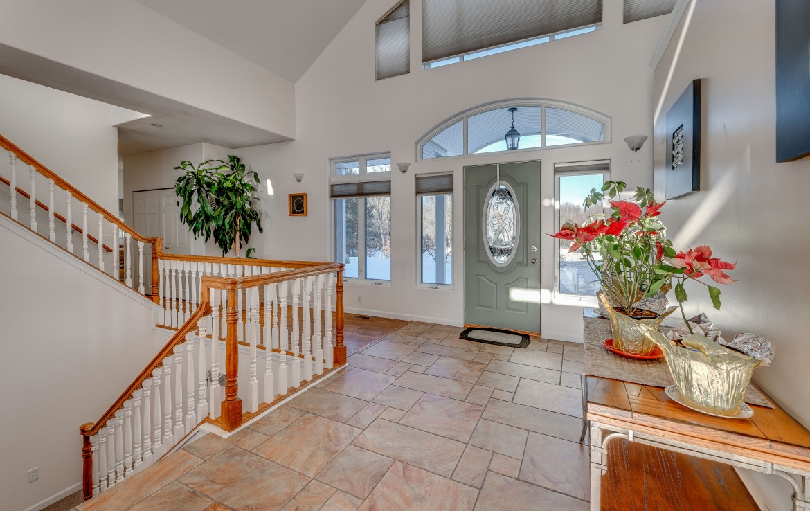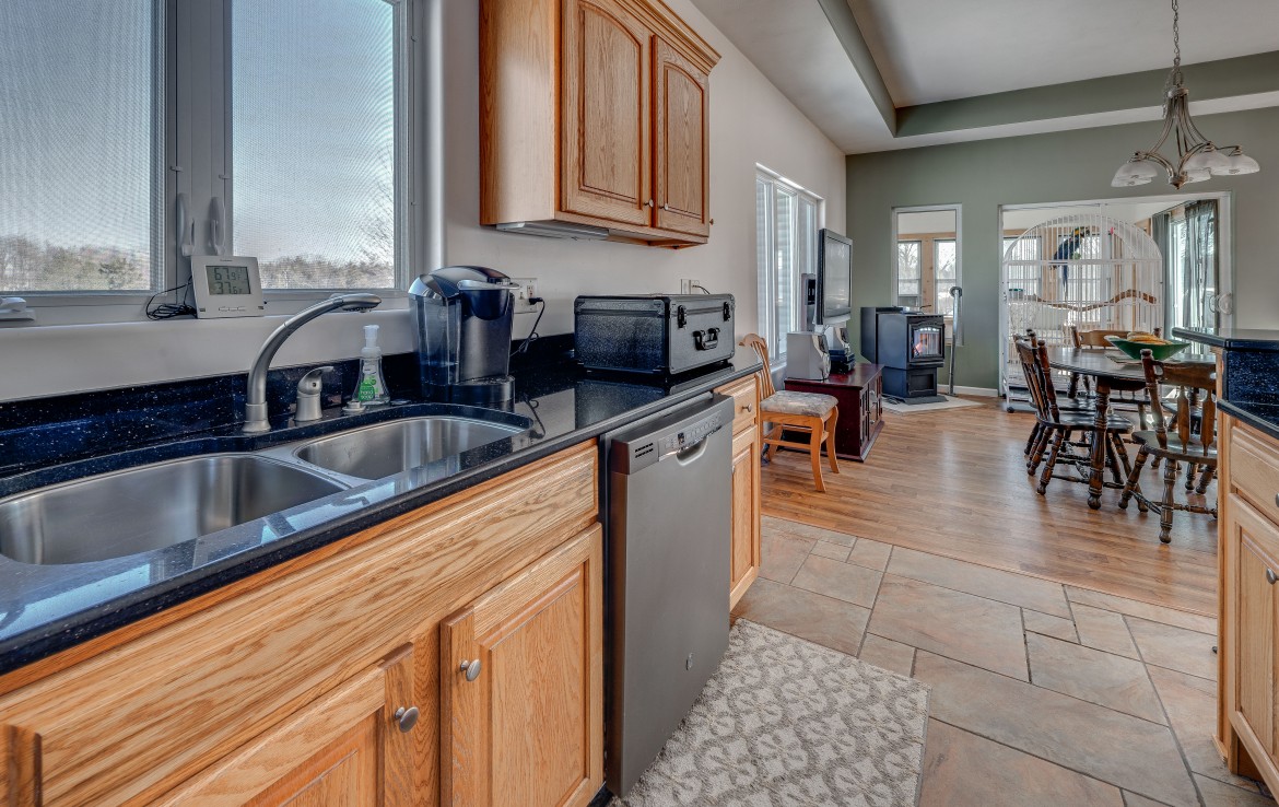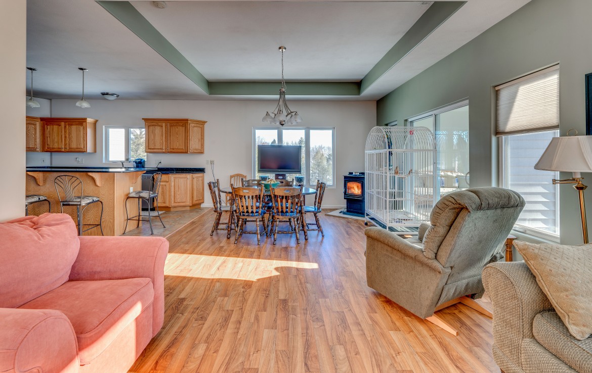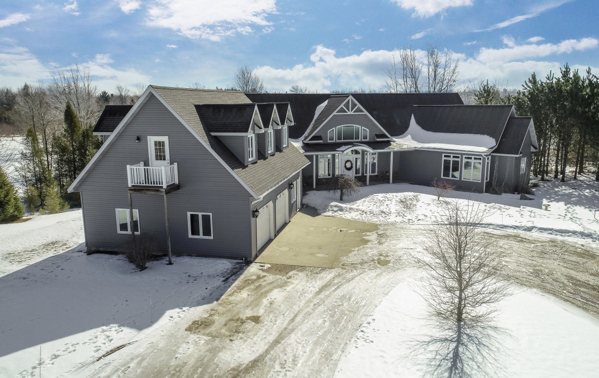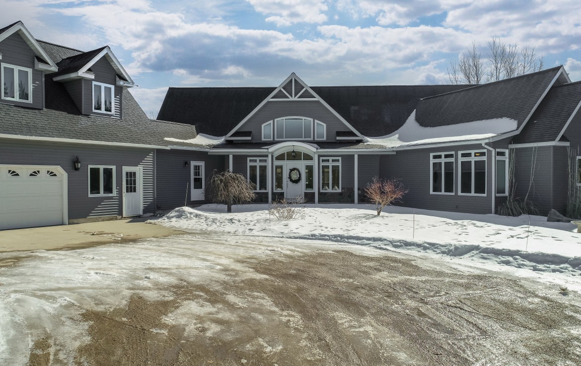 Its not easy to find a beautiful contemporary style home with just over 175′ of lakefront access! This private location sits on a 50 acre lake that boasts great fishing for bluegill, pike, perch, and crappie. Sitting between two larger tracts of wooded area, the wildlife that passes through the property is abundant. A large deck, and walk out patio make the perfect set up for entertaining guests during the summer months. Lower level has potential for apartment or small rental. Also on the property stands a 30×40 pole building that is wired for 220V and and has water.