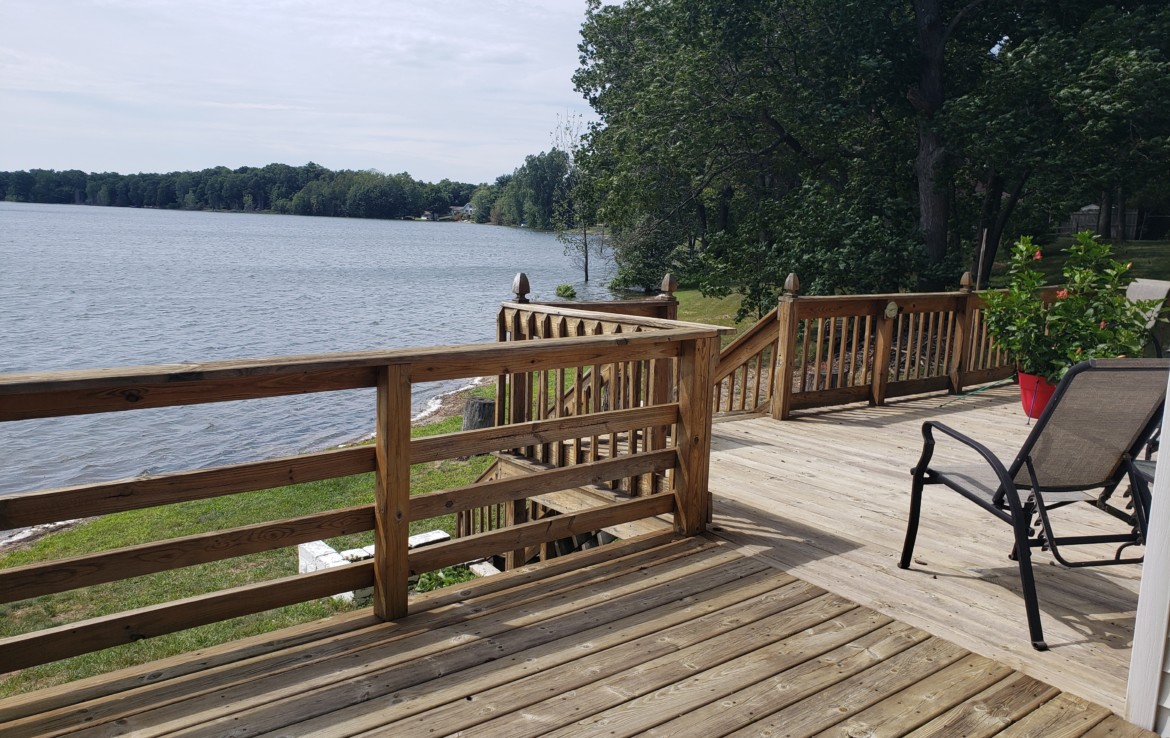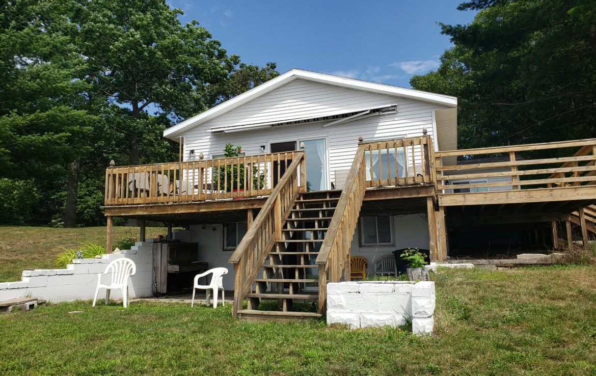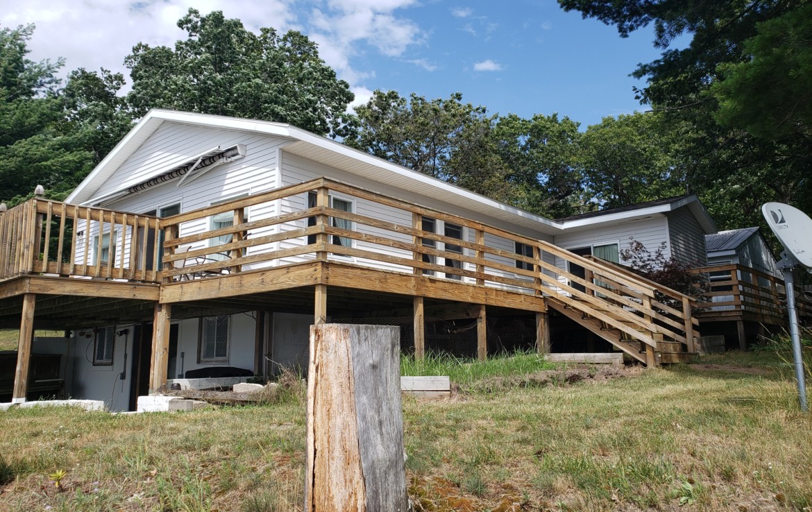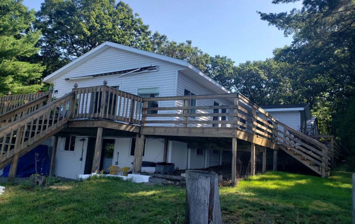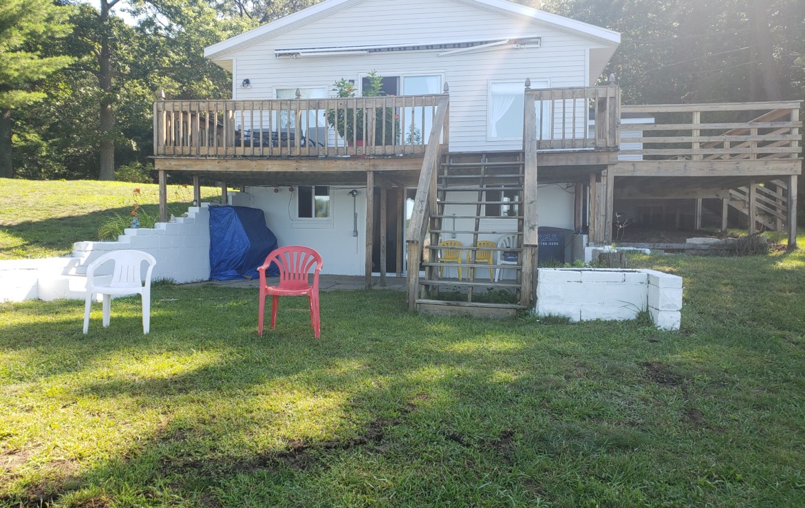 Fox Lake Front Home! 3 Bedrooms and 2 full baths with walkout lower level. Well kept and comfy this home offers the best of lakefront living. Wonderful expansive ”wrap-around” decking that offers basically 3 areas to grab a nice view & entertain (23×11, 37×10 & 29×6). The 2nd bedroom has access to the deck. The garage is 28×24 and there is a 25′ easement around the entire lake. Beautiful views year round! Lots of summer left! Make an appointment to see this great place!! (a 201’x100′ lot next to this home is also for sale)