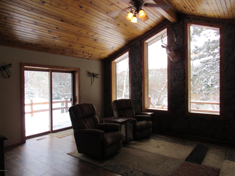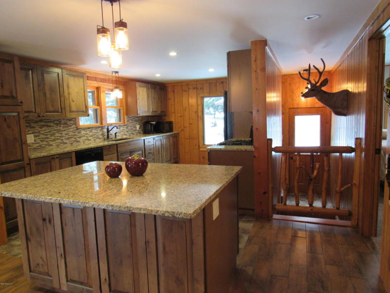 Situated on a gentle bend of the Big Sable River, this tastefully updated log home has a lot to offer. With views of the river from the floor to ceiling windows, wrap around deck, and riverside multi-level deck, you can almost hear nature calling you. New kitchen cabinets and granite counter tops along with river views, make this kitchen a joy to work in. Dining area has large window offering more river views and an excellent entertaining area. Fireplace will warm those chilling evenings as you watch the river meander by. Heated 22’X24′ garage, plus there is a 24’X40′ pole barn. Outdoor wood furnace or propane provide the heat and there is central air for those hot summer days. Located close to any outdoor activity you could ever want, this charming home will fulfill everyone’s desires.